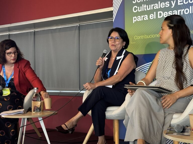 La experiencia de Katherine Bucktron, directora nacional de Derechos Culturales y Ciudadanía del Ministerio de Cultura de Panamá, mostró cómo un ministerio joven —con apenas seis años de existencia— ha aprendido de la cooperación internacional y del intercambio con otros países de la región. Su política se centra en la formación artística y cultural, el trabajo comunitario y la descentralización más allá de la capital.