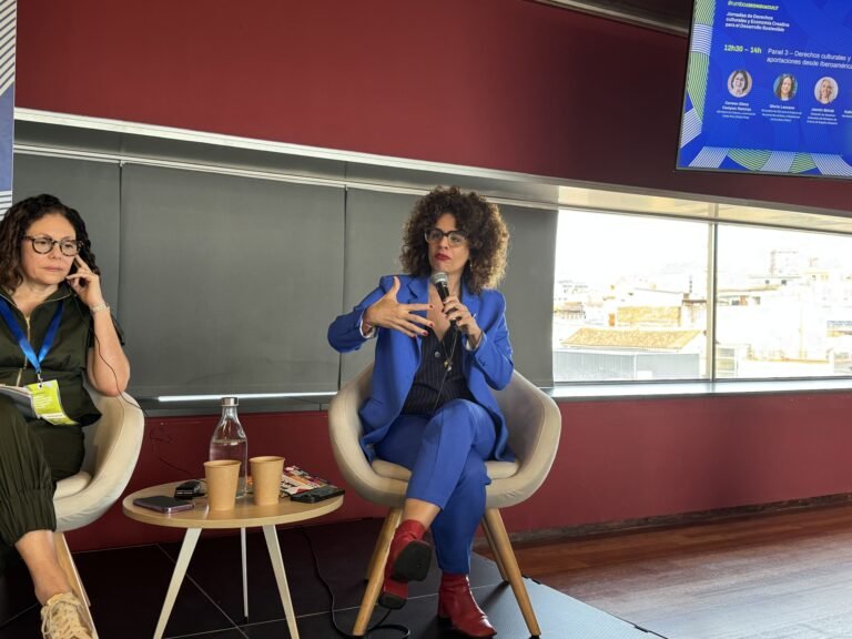 Por su parte, Jazmín Beirak, directora general de Derechos Culturales del Ministerio de Cultura de España, analizó el papel creciente de la cultura en contextos de crisis democrática y cuestionamiento de los derechos humanos. Señaló que la cultura aparece como una vía para fortalecer valores democráticos y llamó la atención sobre la distribución desigual del campo cultural, dominado en ocasiones por conglomerados que condicionan el acceso y la participación.